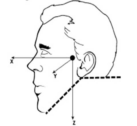 While a sphere might be an acceptable model of moment of inertia, we should keep in mind that the head is not a sphere. Calculating the moment of inertia for an irregularly shaped object like the head can be tricky, but fortunately there are a number of researchers who have figured this out for us. Yoganandan et al. (2009) provides a summary of multiple studies that have calculated the moment of inertia of the human head for rotation around the x (left-right tilt), y (up-down rotation), and z (left-right rotation) axes using human cadavers.